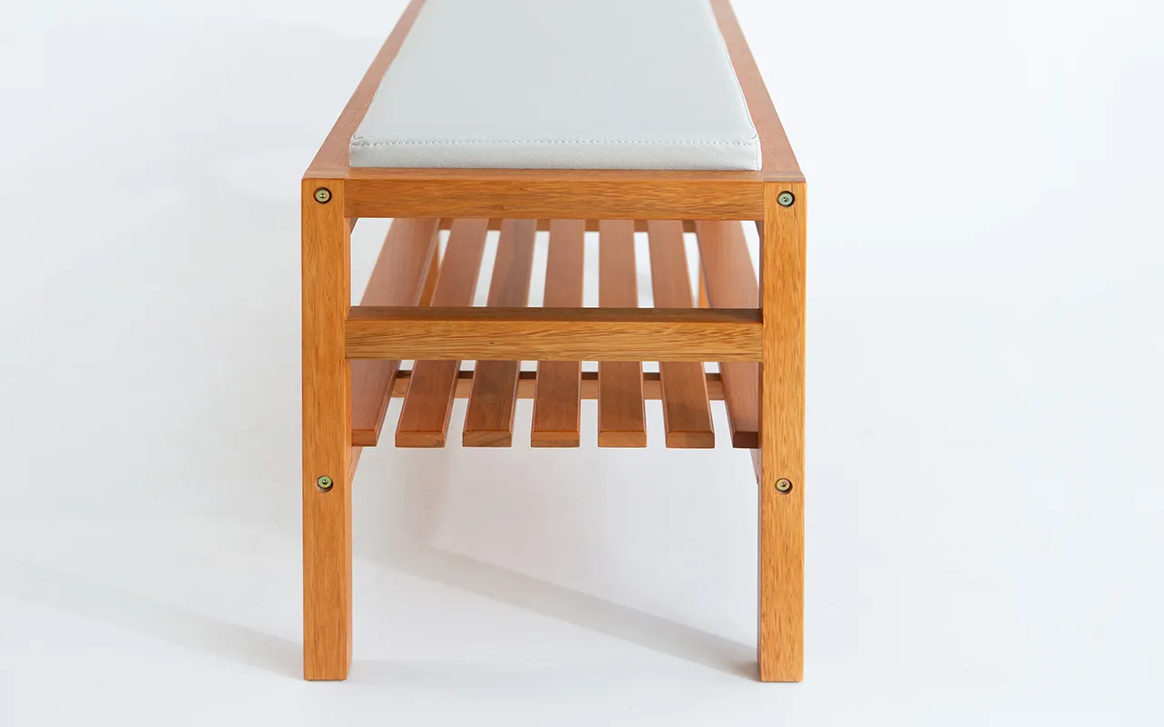 Feito com madeira maciça de eucalipto e acabamento
