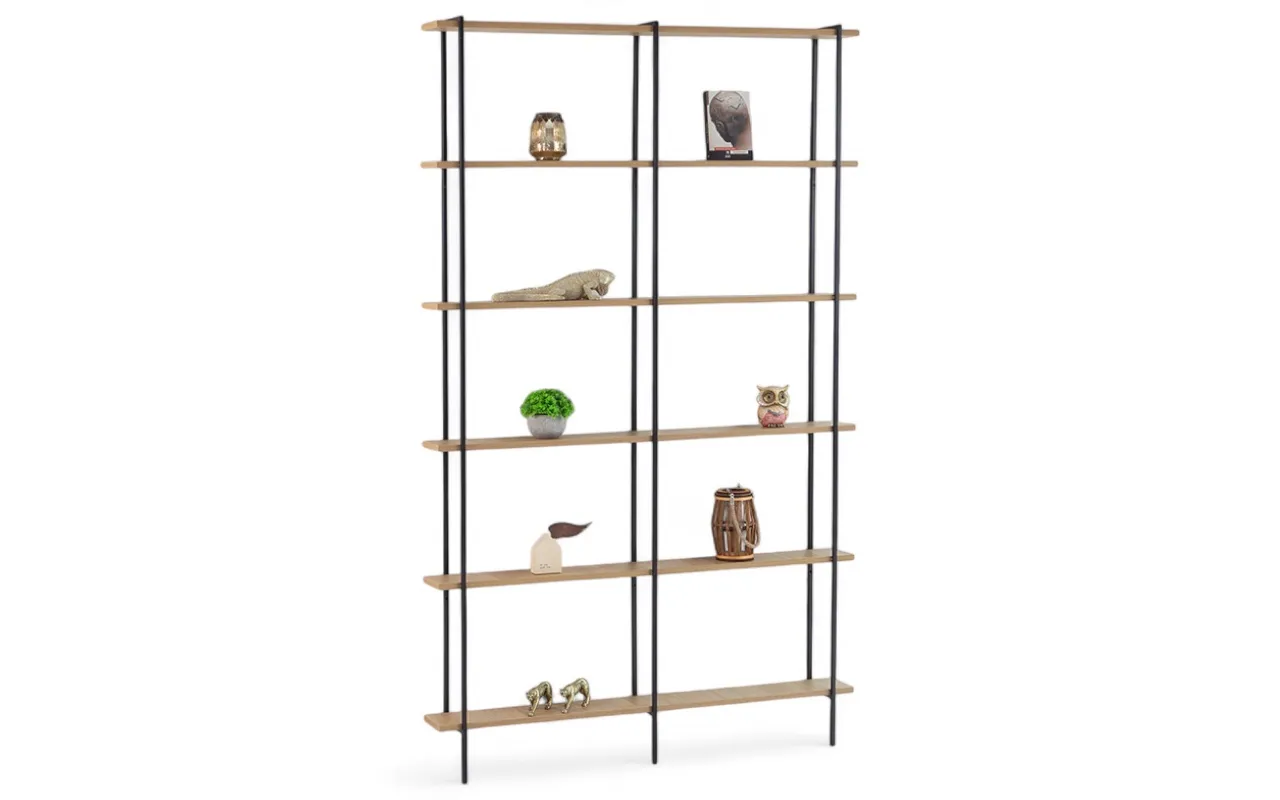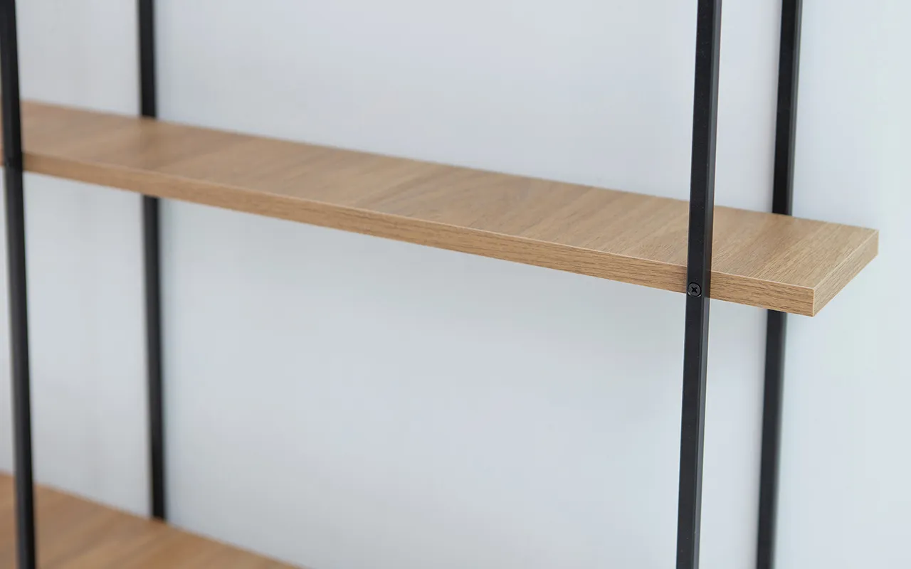 Essa estante estilo industrial, além de levar personalidade para seu ambiente, vai te dar uma bela ajuda na organização de sua sala ou quarto. Ela possui só 14 cm de profundidade!