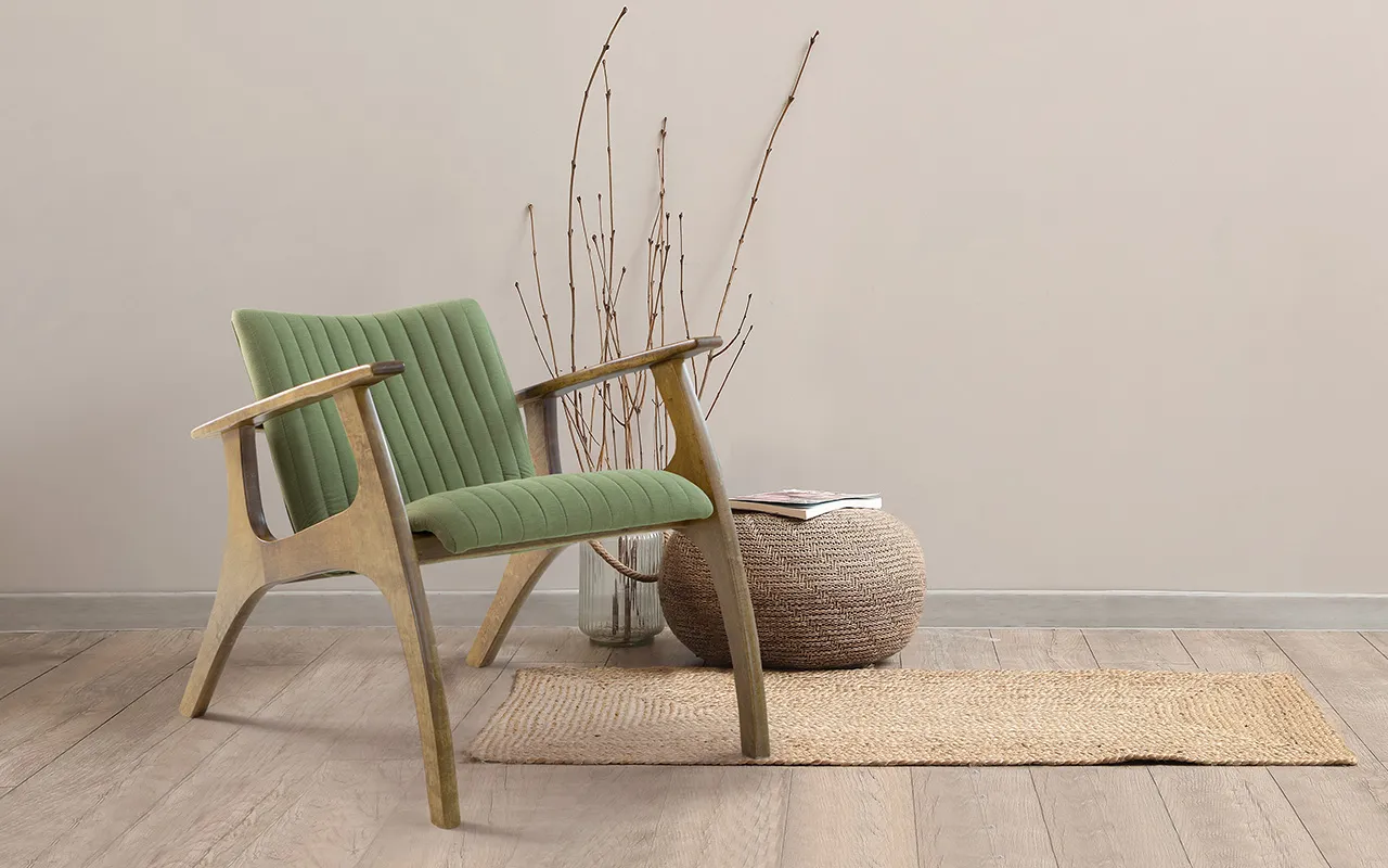 O tecido utilizado nesta poltrona com braços é em algodão, fazendo com que seja ainda mais confortável.