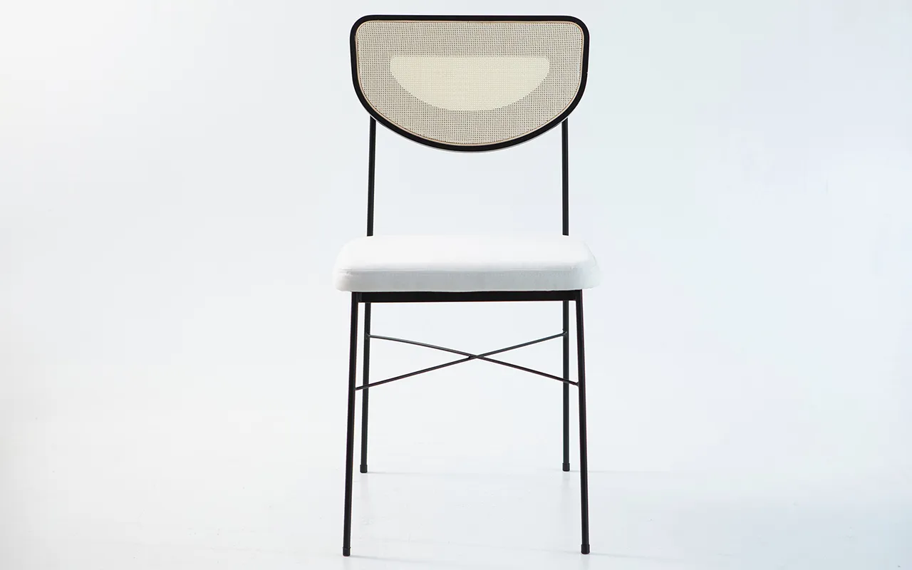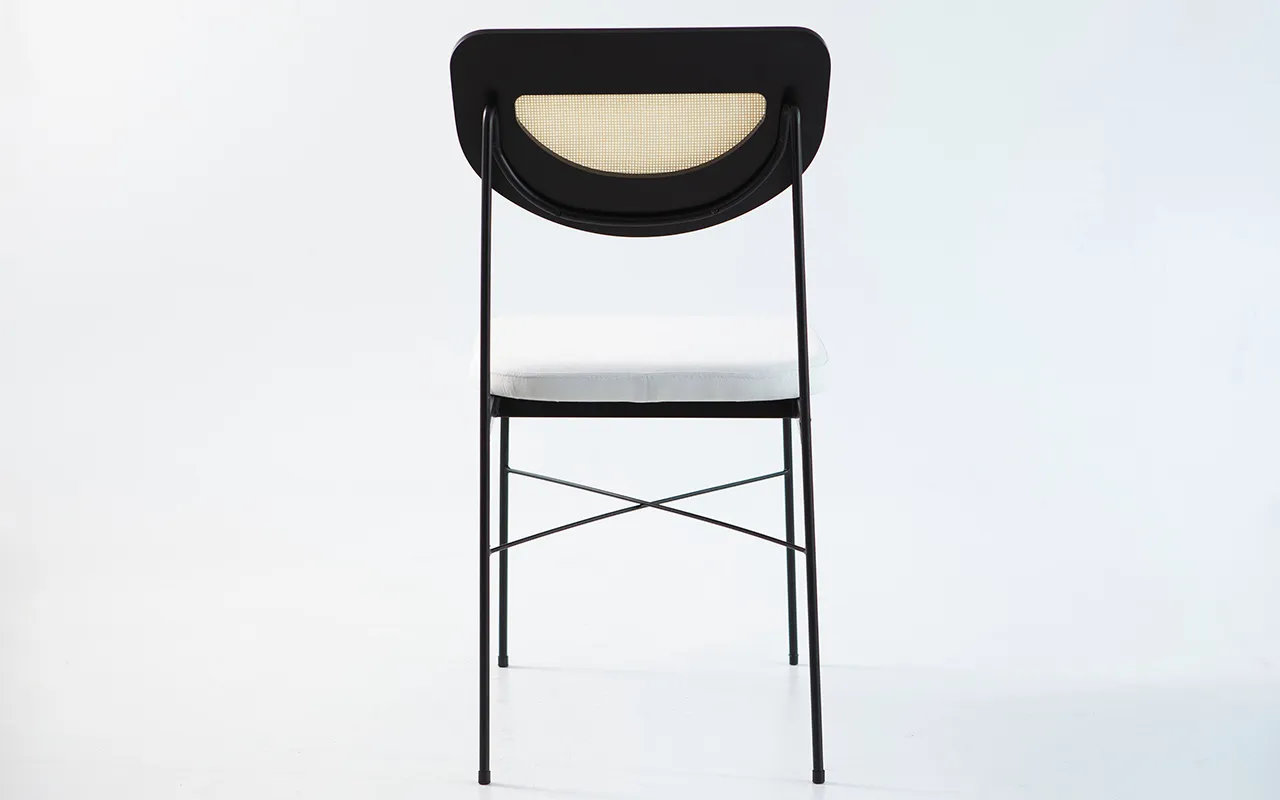 mix incrível de materiais — metal, madeira e palhinha — que trazem textura e