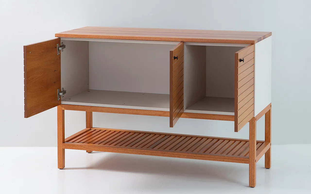 Na estrutura da caixaria você encontrará a qualidade incomparável do MDF BP de 15mm e nas portas um MDF com lâmina natural de madeira envernizado. Não se contente com materiais comuns e ruins encontrados por aí: Nosso móvel é fabricado com bordas 100% vedadas, proporcionando uma proteção excepcional contra umidade e garantindo que sua bancada mantenha sua integridade ao longo do tempo. Adeus, preocupações com empenamento e desgaste prematuro!