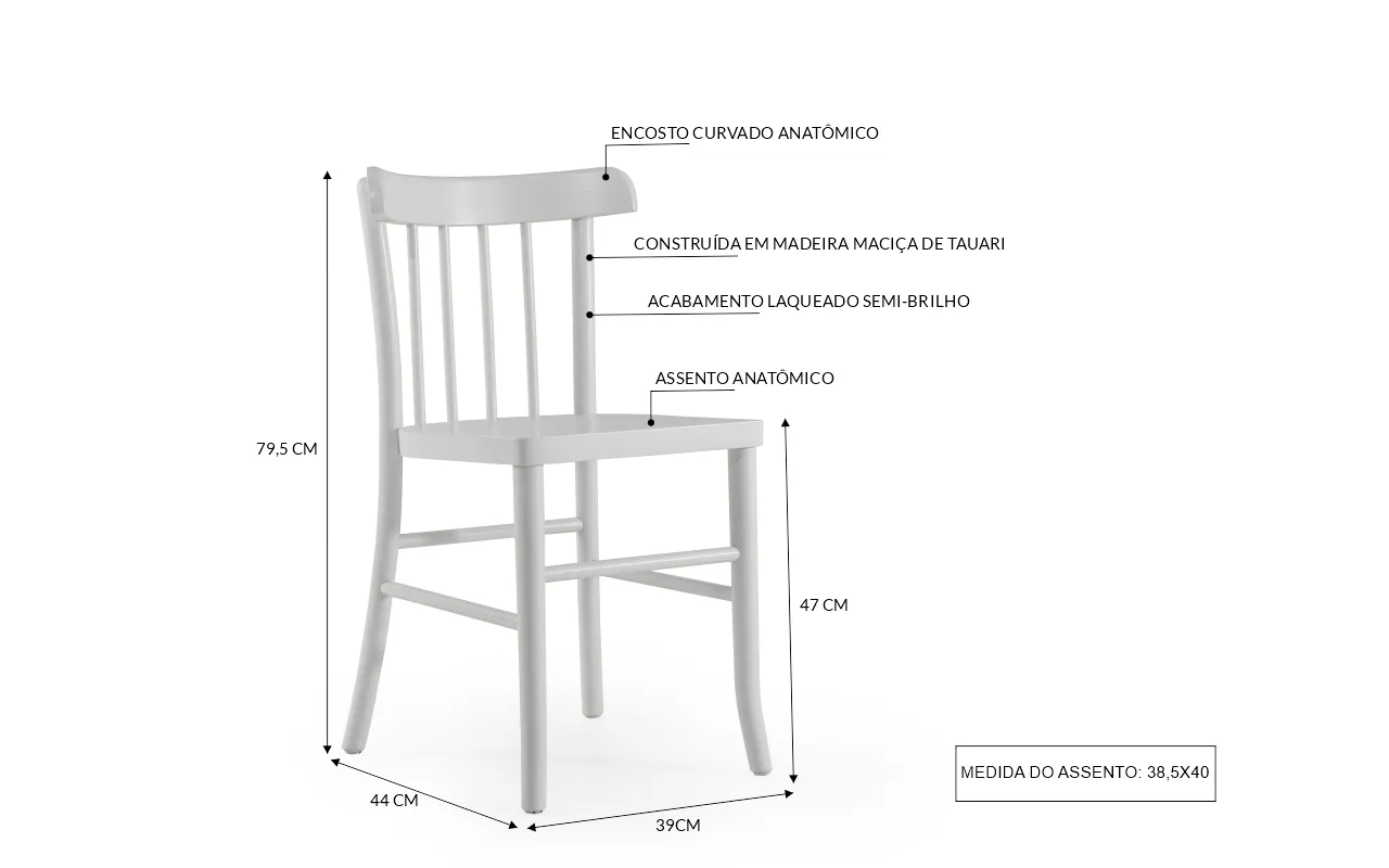 Essa linda cadeira pés palito é fabricada em madeira maciça de tauari, madeira dura e resistente, por isso é ótima também como cadeira para restaurante, cadeira para bar, ou cadeira para boteco.