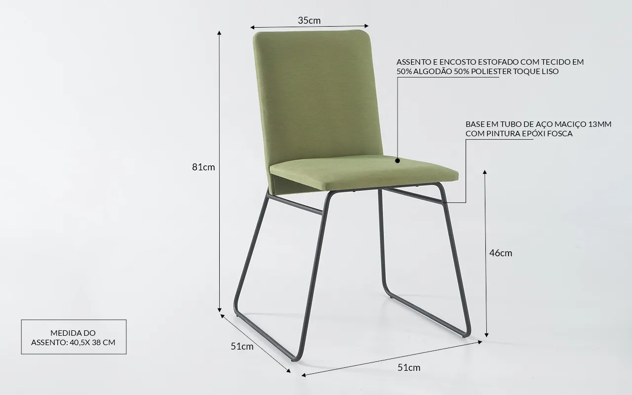 Além disso, é importante ressaltar, que está cadeira com pés de metal possui a base em tubos de aço maciço com 13mm de espessura, o que garante muita resistência e durabilidade para o uso do dia-a-dia ou até mesmo para ambientes corporativos.