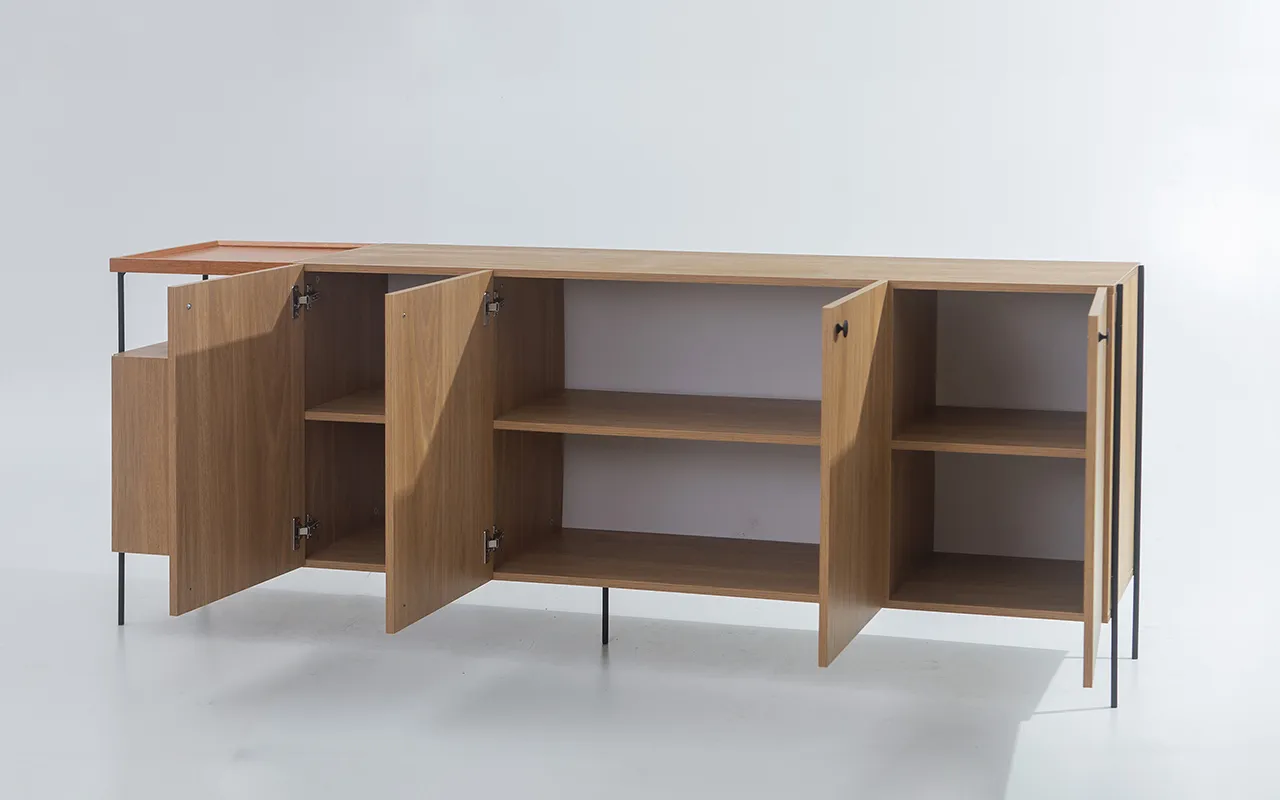 Os pés de metal com tubo redondo não apenas oferecem estabilidade sólida, mas também contribuem para a estética moderna do aparador. E agora, com as dobradiças das portas equipadas com amortecimento, você experimentará um fechamento suave e silencioso, acrescentando um toque de luxo ao seu móvel.