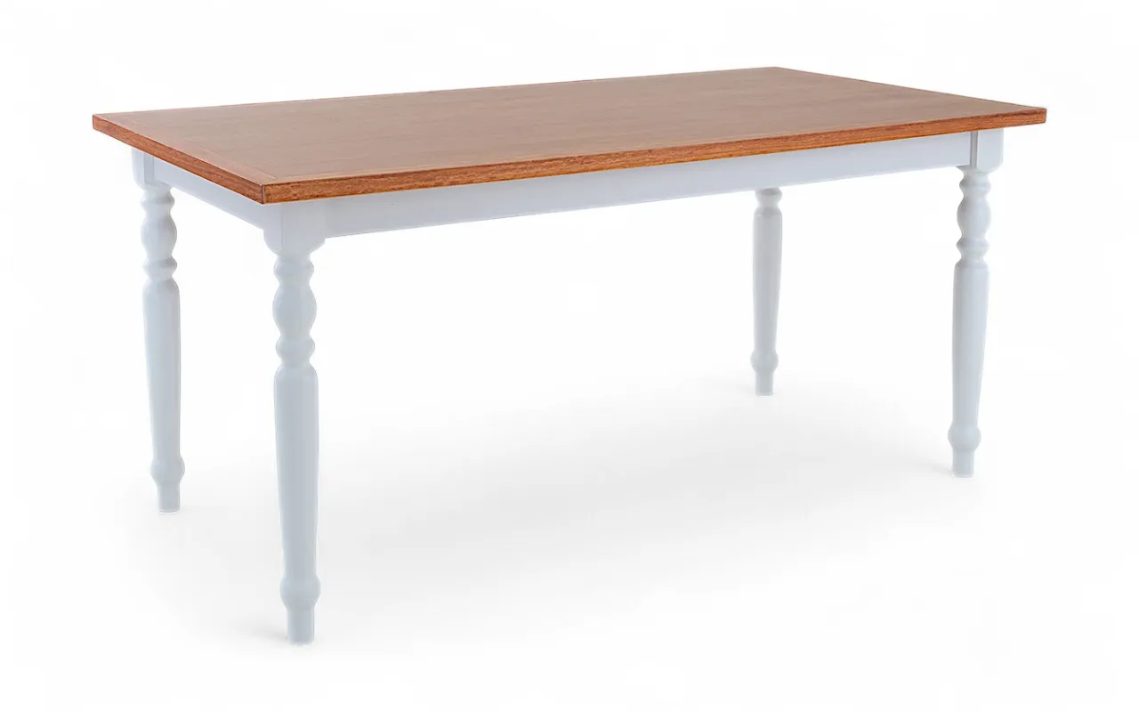 MESA DE JANTAR DE MADEIRA MACIÇA COM PÉS TORNEADOS CAMPESINA 160X80X75 CM VERNIZ JATOBÁ E LACA BRANCO
