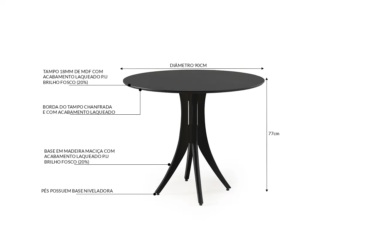 Os pés desta mesa bistrô Juliette são construído em madeira maciça recebe acabamento laqueado P.U com brilho 20%.