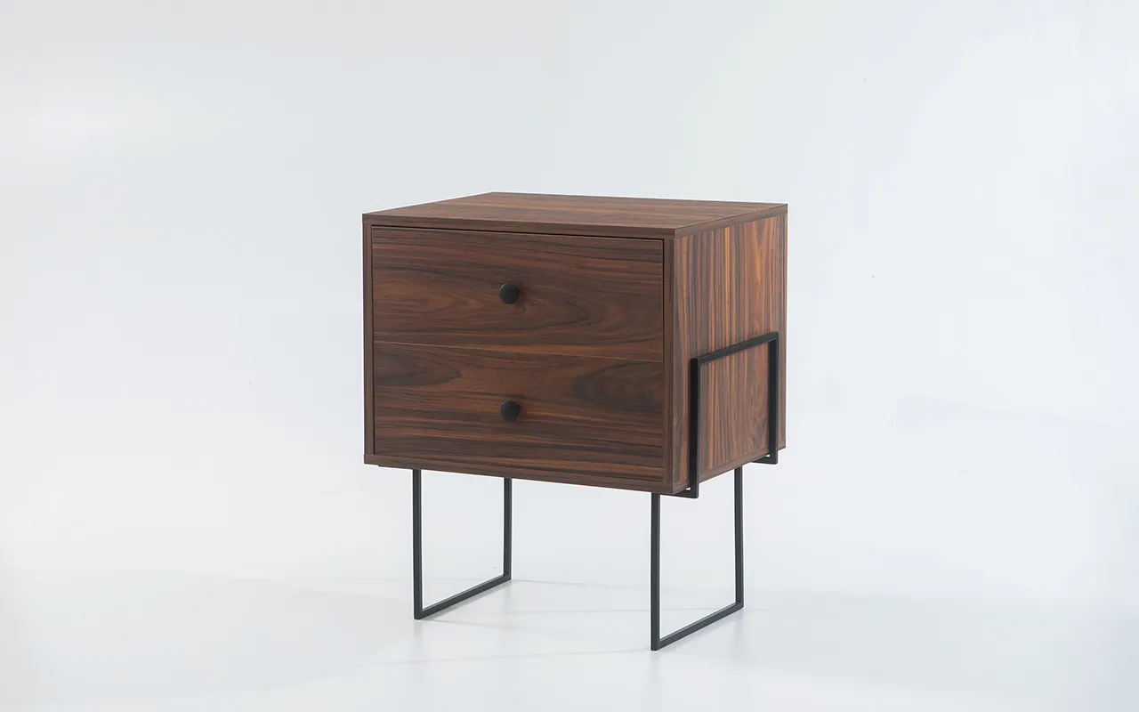 Os puxadores de metal são não apenas funcionais, mas também acrescentam um toque refinado ao design da mesinha de cabeceira. Eles são práticos e duráveis, complementando a estética moderna e elegante da Znash.