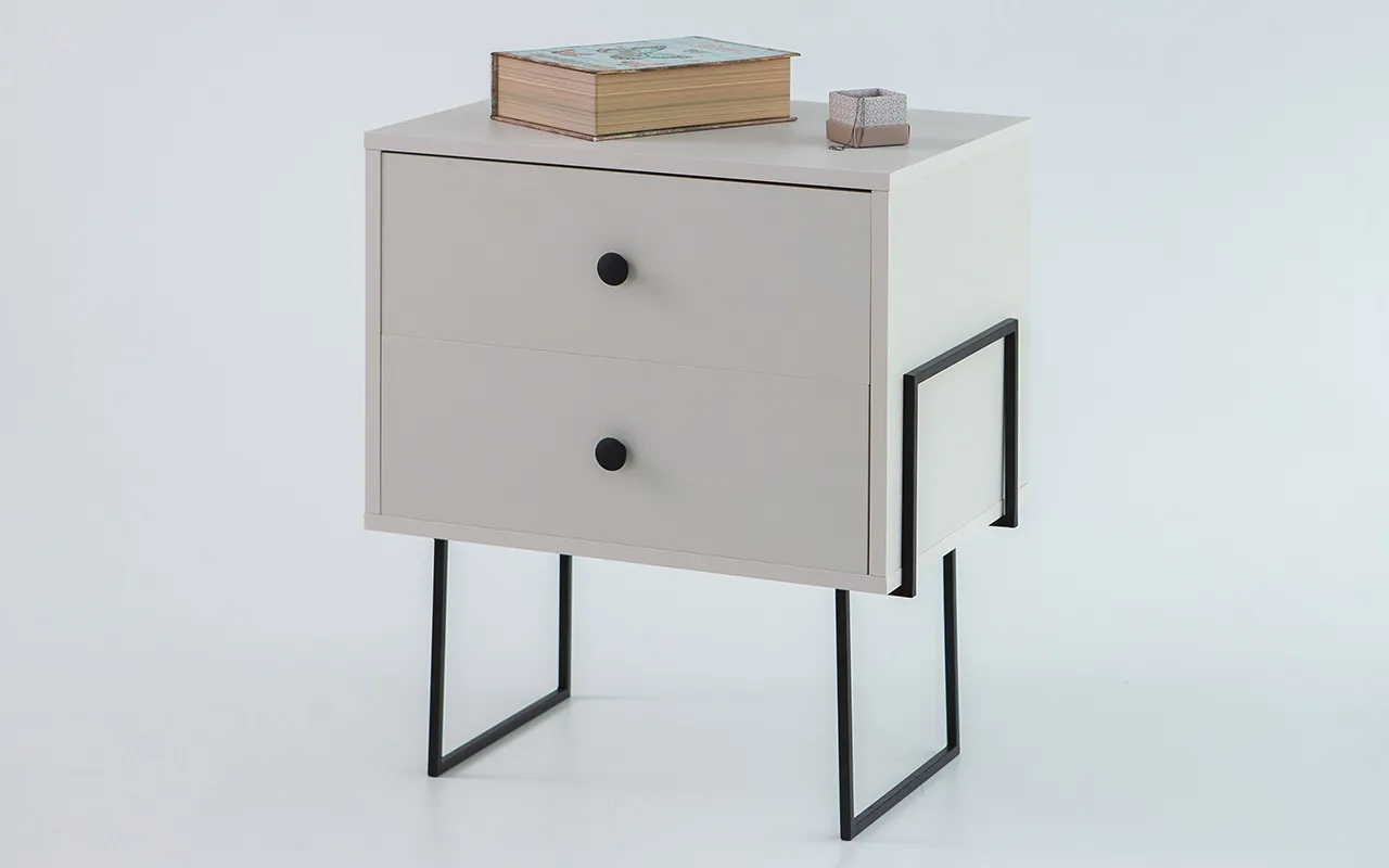As duas gavetas desta mesinha de cabeceira oferecem amplo espaço de armazenamento para os seus itens pessoais. Graças às corrediças telescópicas de alta qualidade, o deslizamento é seguro, permitindo fácil acesso ao conteúdo. Cada gaveta é capaz de suportar até 5kg de peso, tornando-a perfeita para guardar livros, eletrônicos, ou qualquer outra coisa que você desejar.
