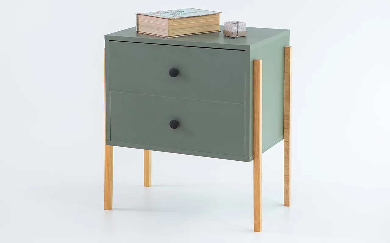 Você vai encontrar esta mesa de cabeceira com duas gavetas e também com variação de apenas uma gaveta com prateleira! Além disso, montamos várias composições de cores que vão desde o branco até os madeirados texturizados de ótimo bom gosto.