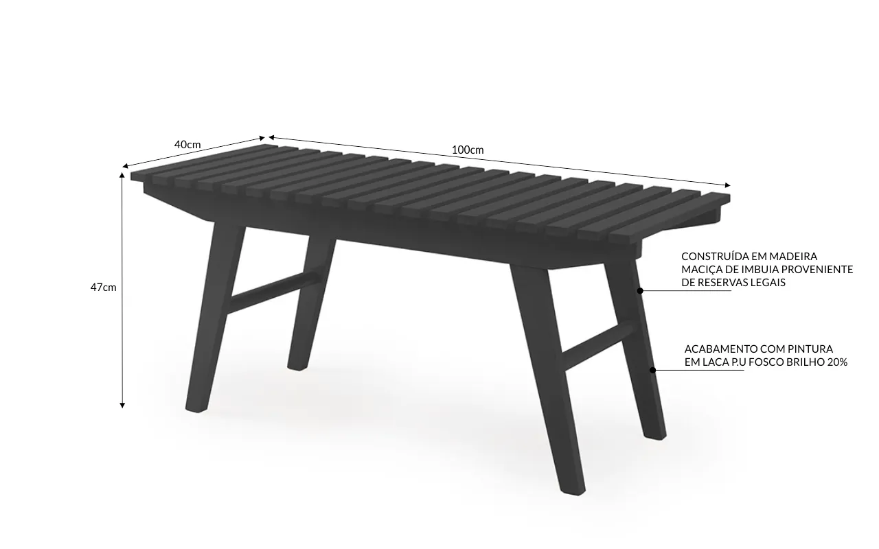 O acabamento desse banco sem encosto é laqueado P.U fosco 20% de brilho.