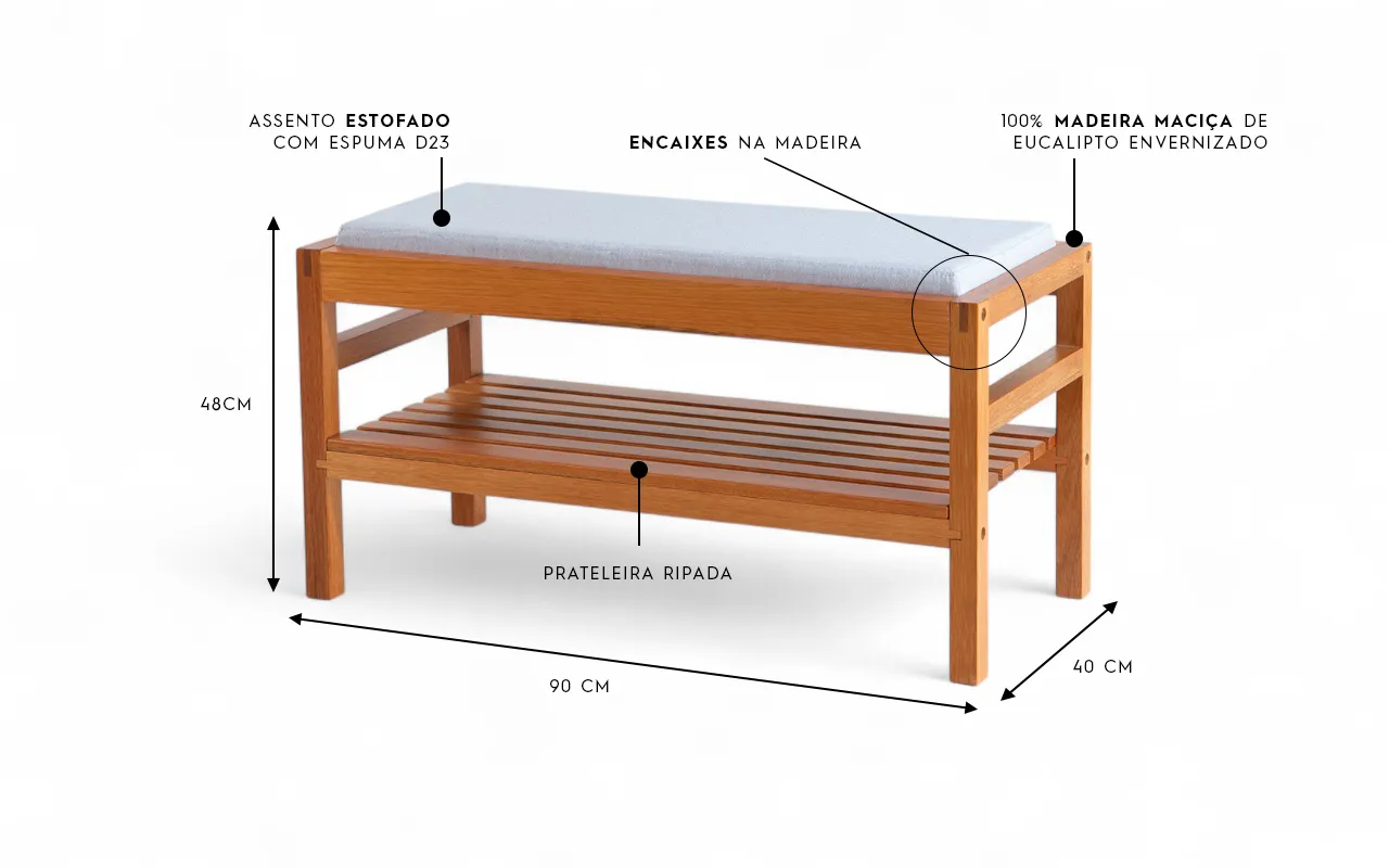 O Eucalipto que é usado vem de uma madeira forte, dura e resistente, além de ser ecologicamente correta, para ajudar ainda mais nossa mãe natureza!