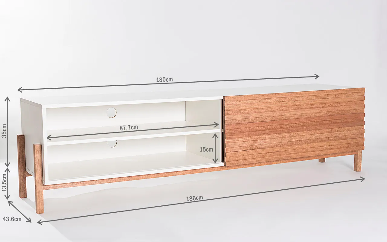 Os pés desse rack para tv retrô são de madeira maciça mesmo!!! Este rack para sala com pés de madeira é um rack contemporâneo com pés de madeira em estilo retrô que além de descontrair, vai levar personalidade para sua sala de tv ou quarto. É uma excelente opção de rack para salas pequenas ou rack branco para quarto.