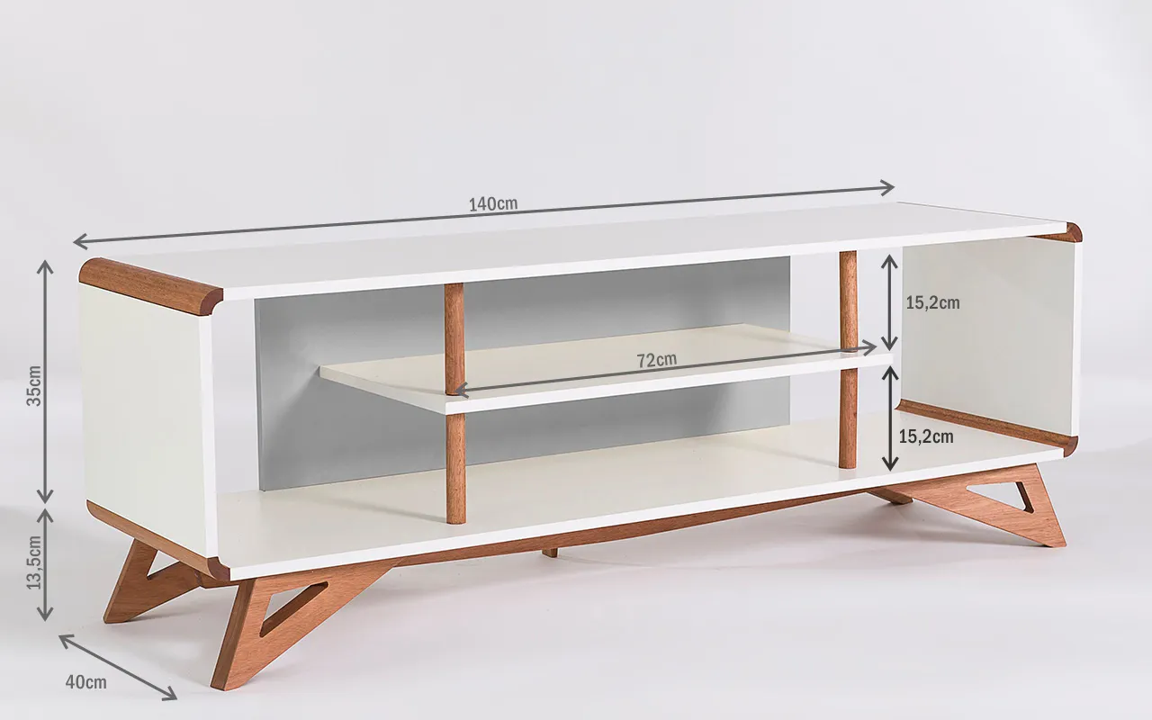 Os pés desse rack para tv retrô são de madeira maciça mesmo!!! Este rack para sala com pés de madeira é um rack contemporâneo com pés de madeira em estilo retrô que além de descontrair, vai levar personalidade para sua sala de tv ou quarto. É uma excelente opção de rack para salas pequenas ou rack branco para quarto.