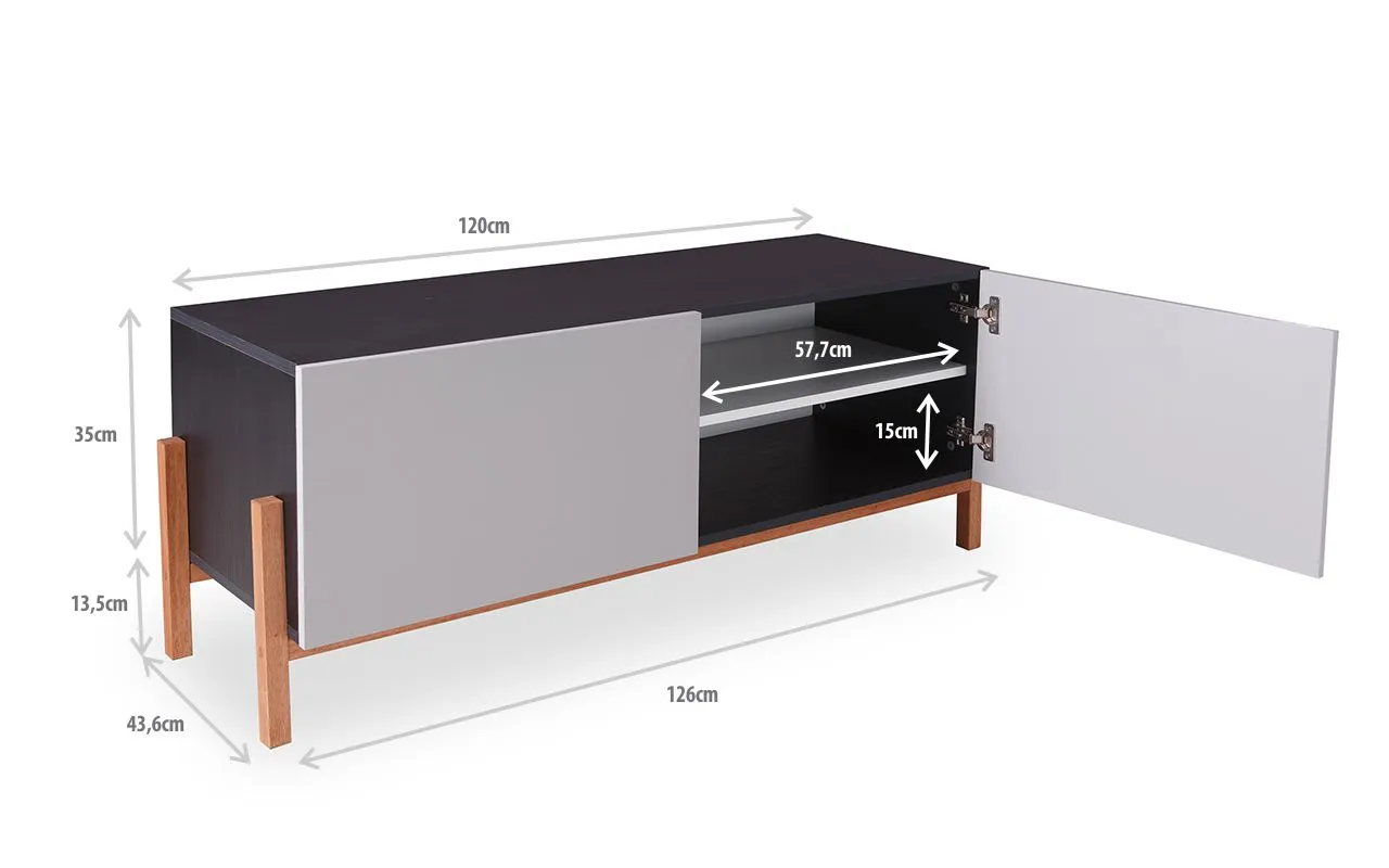 Os pés desse rack para tv retrô são de madeira maciça de Eucalipto mesmo! Este rack preto para sala com pés de madeira é um rack contemporâneo com pés de madeira em estilo retrô que além de descontrair, vai levar personalidade para sua sala de tv ou quarto. É uma excelente opção de rack preto para salas pequenas (utilizar: salas espaçosas nas opções 1,6 e 1,8) ou rack para quarto.