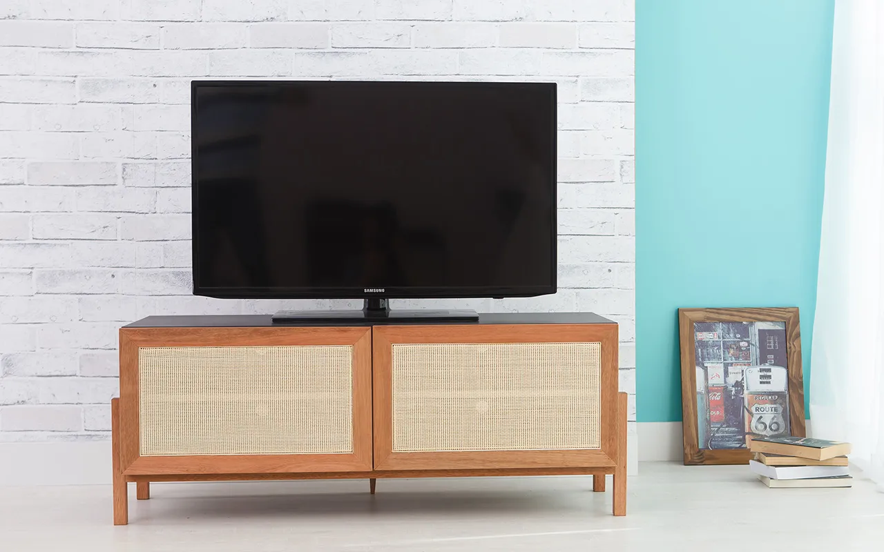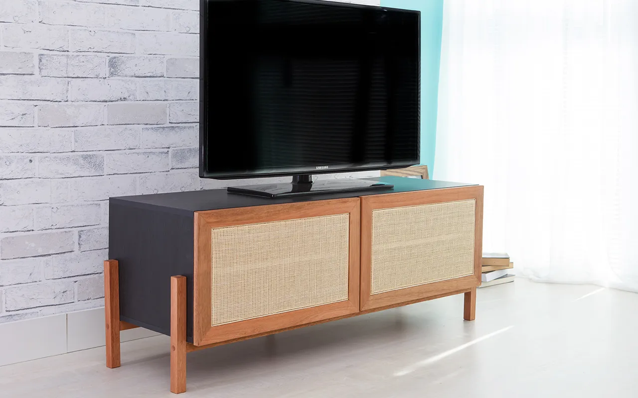 Este rack para tv preto com 2 portas RATTAN é construído em mdf revestido com melamina de alta resistência a riscos num lindo padrão texturizado na cor preta! É isso mesmo, tenha seu rack preto num padrão de excelente acabamento estético. Além disso, seus pés são construídos em madeira maciça de Eucalipto com acabamento natural para ressaltar os veios naturais da madeira. Além disso, este rack para tv baixo é de fácil limpeza: basta um pano úmido!