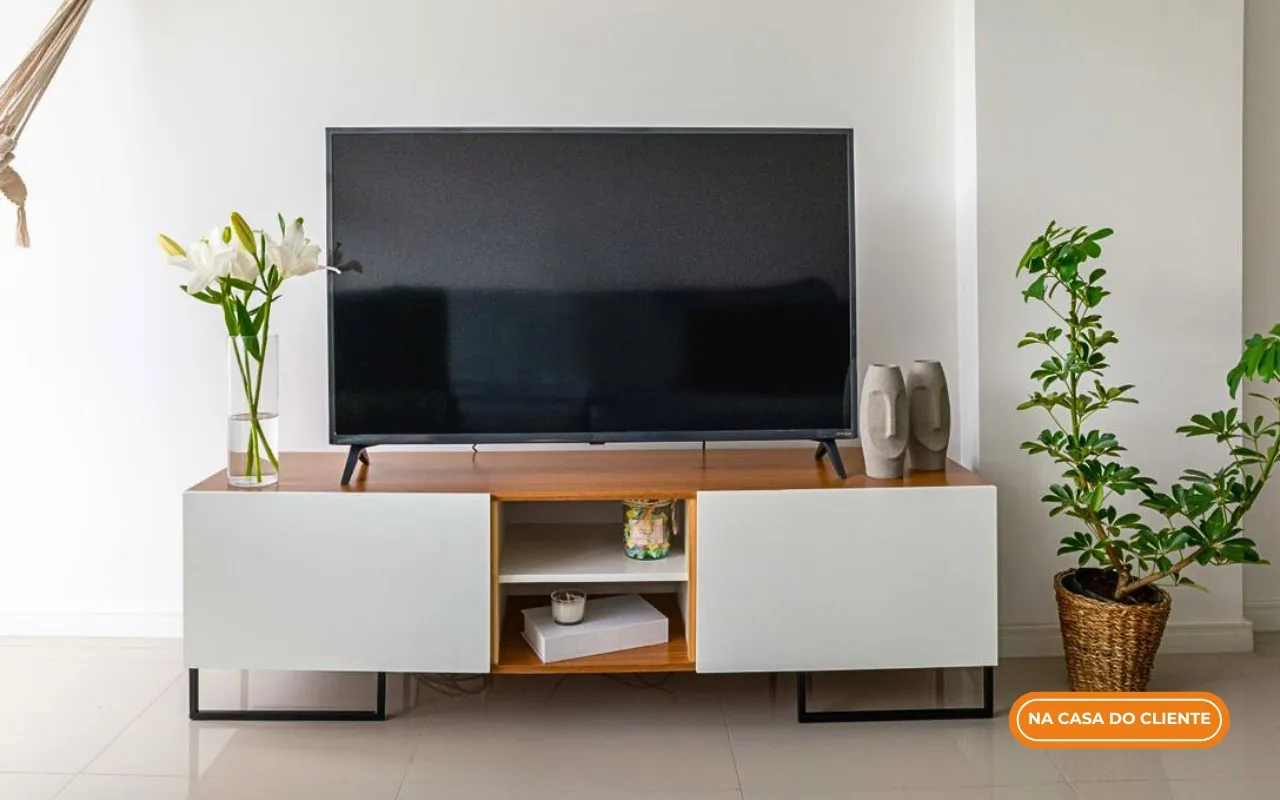 O rack para sala se tornou além de um item decorativo central, ele tem a responsabilidade de abrigar a TV que se tornou o centro multimídia da casa, já que o clube de assinaturas das suas séries ou músicas preferidas estão nela, não é?