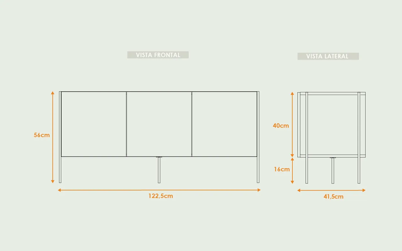 122,5(comprimento) x 41,5(profundidade) x 56(altura) cm