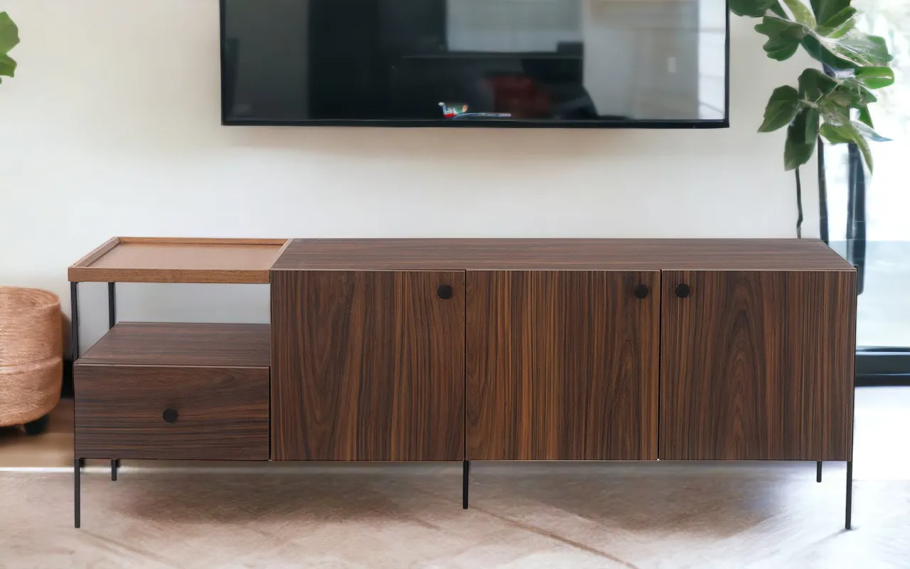 Mantenha sua sala organizada e estilosa com o Rack de TV com Gaveta 3 Portas Tray.