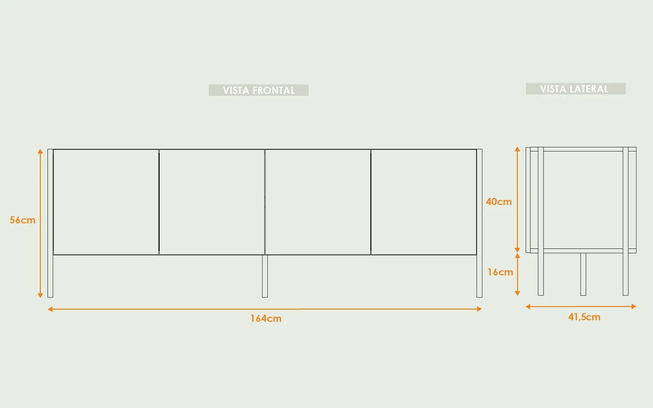 164(comprimento) x 41,5(profundidade) x 56(altura) cm