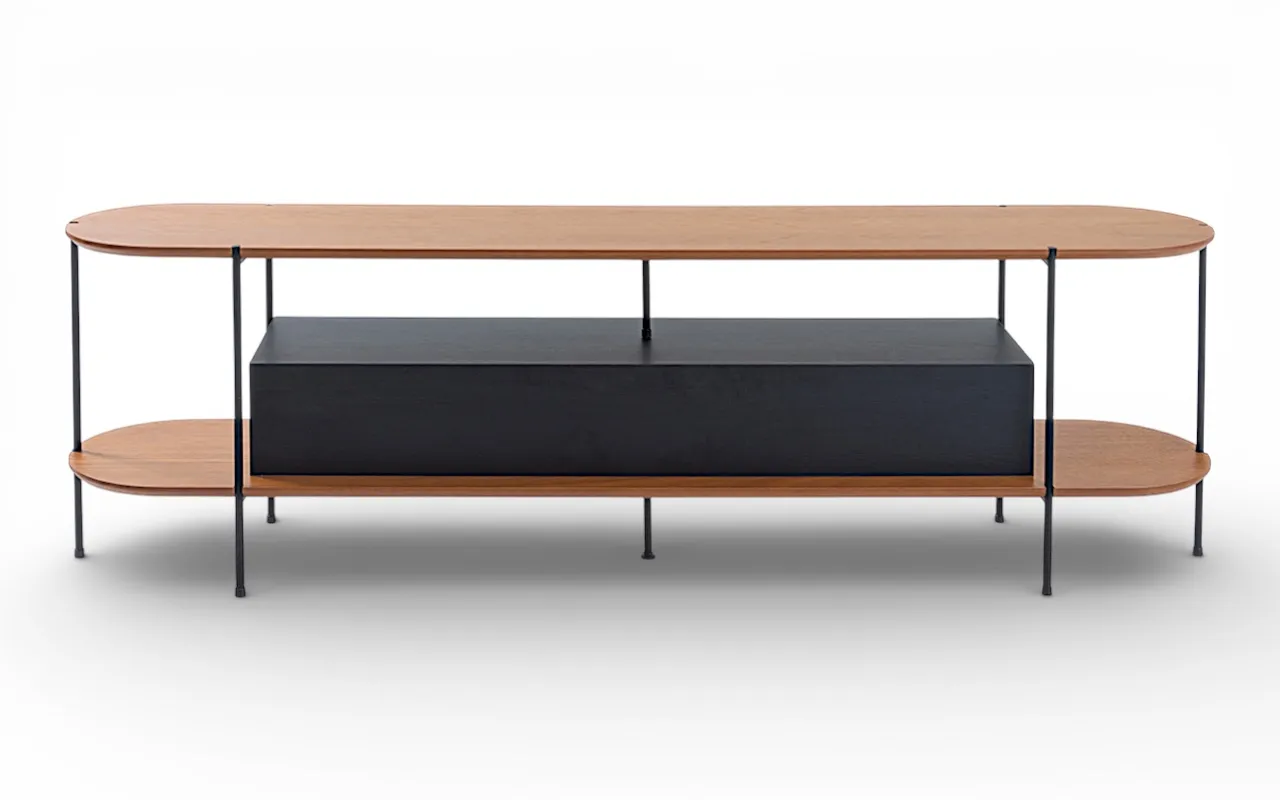 A combinação entre madeira natural, MDF de alto padrão e estrutura metálica cria um visual atemporal — moderno sem ser frio, elegante sem excessos. Mais do que um móvel funcional, este rack é uma peça protagonista que valoriza e organiza o espaço com sofisticação.