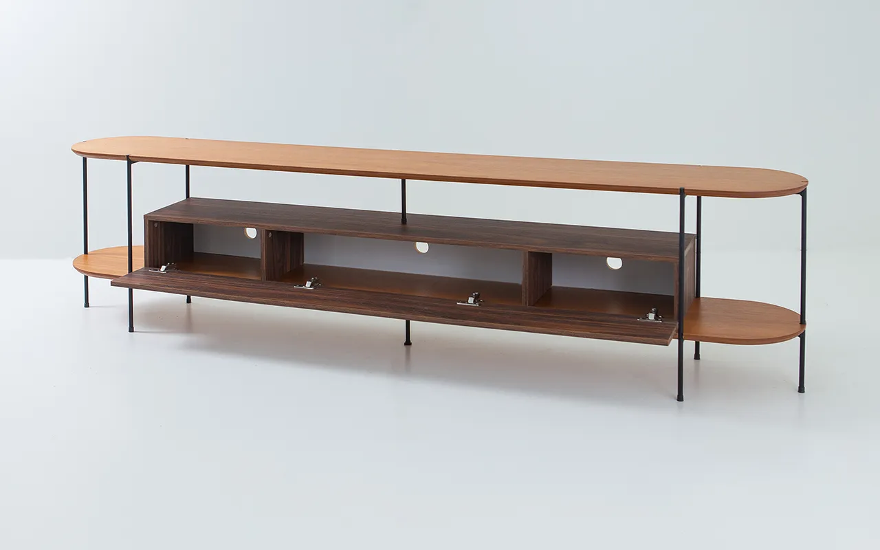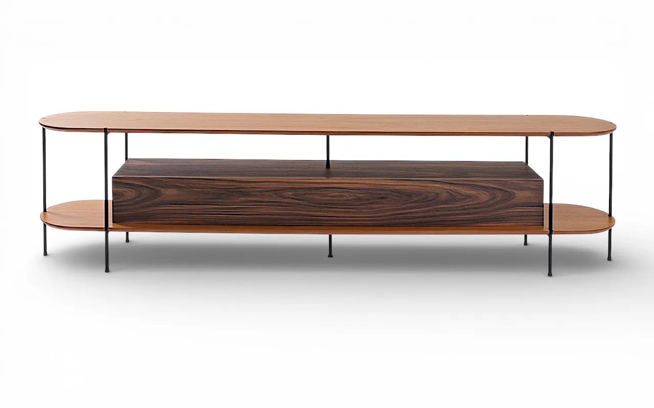 A combinação entre madeira natural, MDF de alto padrão e estrutura metálica cria um visual atemporal — moderno sem ser frio, elegante sem excessos. Mais do que um móvel funcional, este rack é uma peça protagonista que valoriza e organiza o espaço com sofisticação.