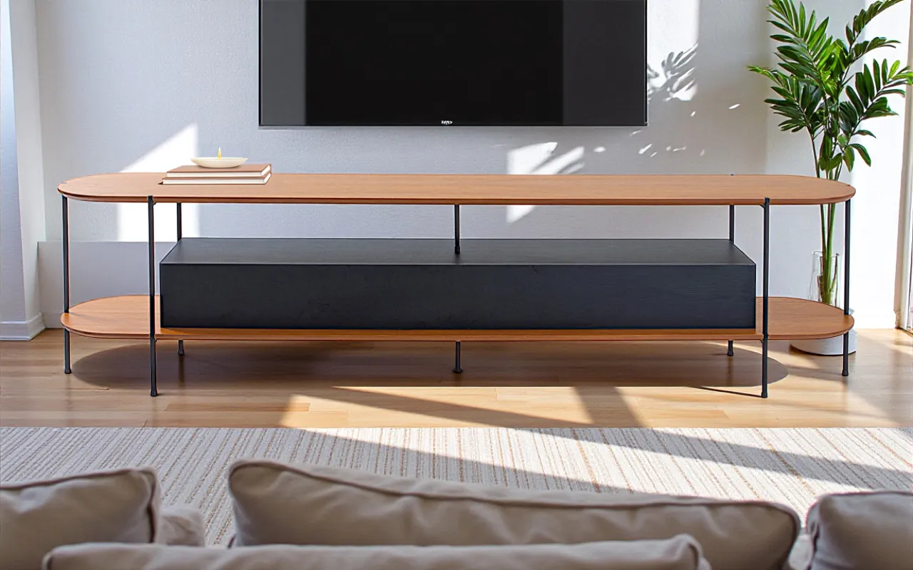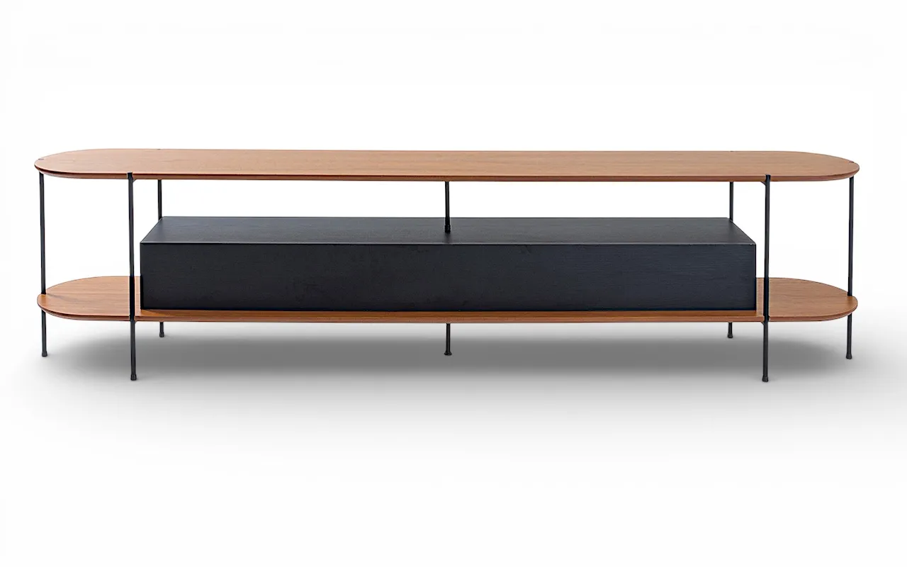 A combinação entre madeira natural, MDF de alto padrão e estrutura metálica cria um visual atemporal — moderno sem ser frio, elegante sem excessos. Mais do que um móvel funcional, este rack é uma peça protagonista que valoriza e organiza o espaço com sofisticação.