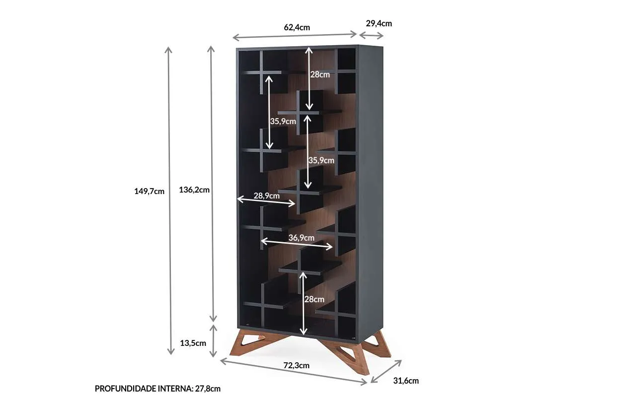 72,3(comprimento) x 31,6(profundidade) x 149,7(altura) cm.