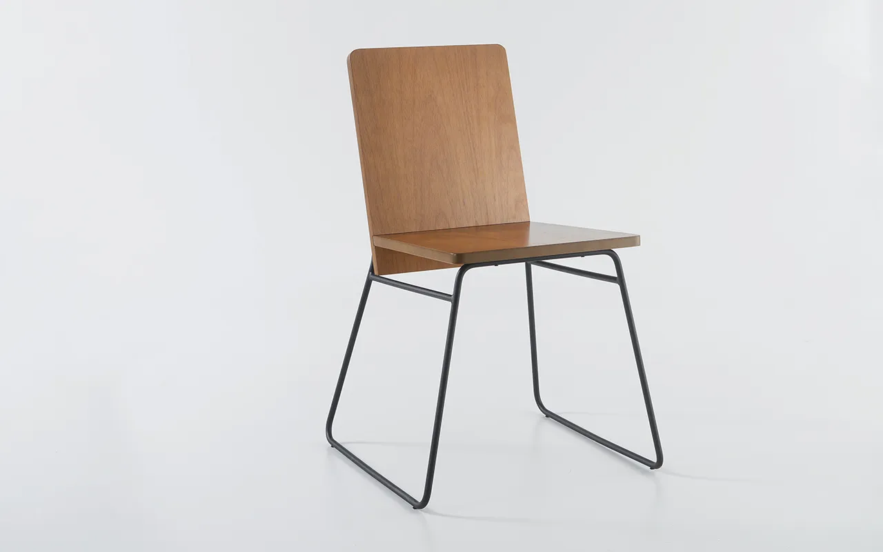 A partir de uma mesma base de metal criamos várias opções de encostos, tecidos e tonalidades amadeiradas que resultaram numa cadeira de metal moderna e cheia de versatilidade!