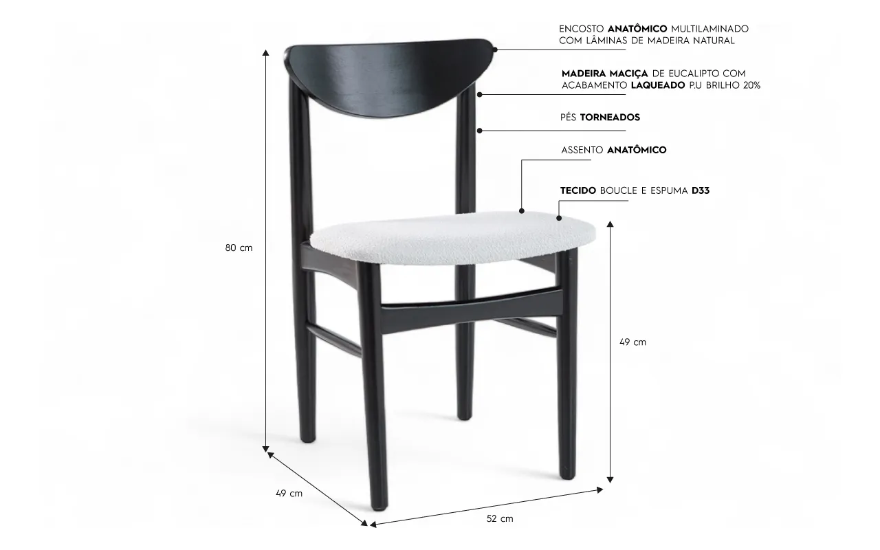 Seus pés são torneados, e o encosto é anatômico, detalhes que fazem esta cadeira moderna ficar ainda mais linda e confortável!