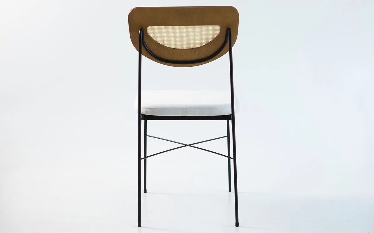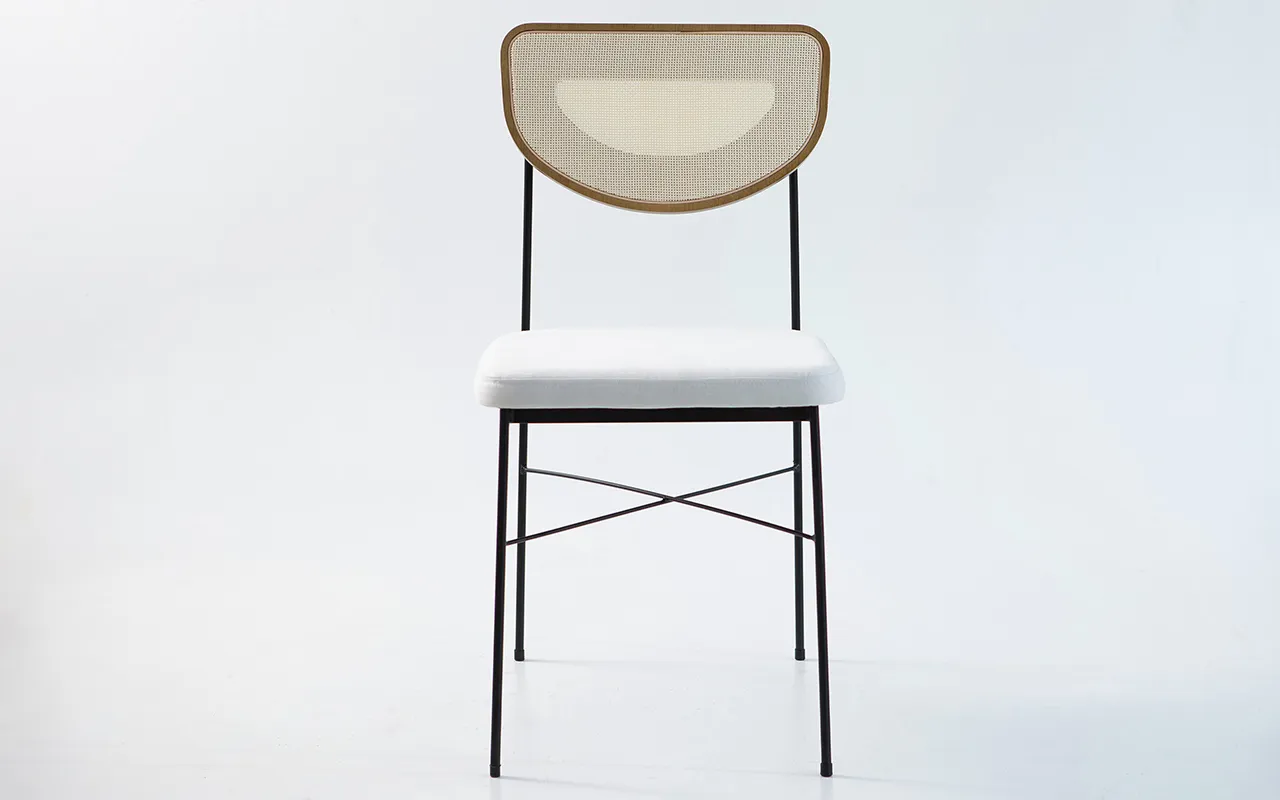 mix incrível de materiais — metal, madeira e palhinha — que trazem textura e
