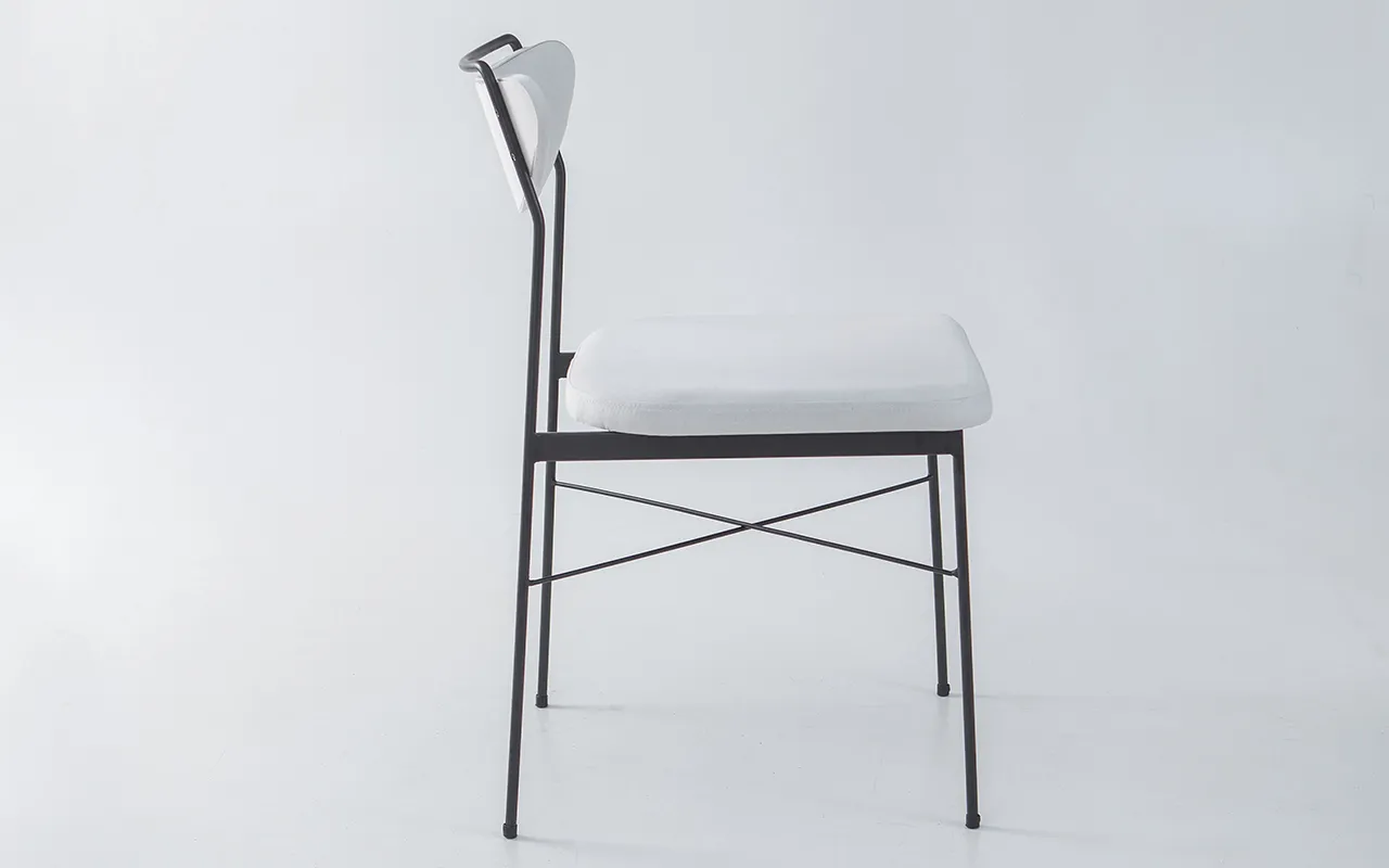 a cadeira Léa combina beleza e resistência. Sua estrutura é feita com aço 100%
