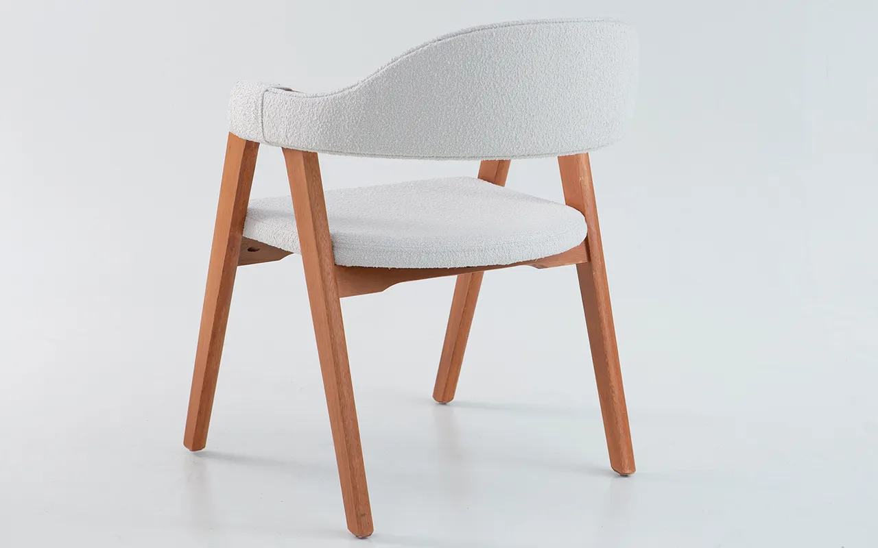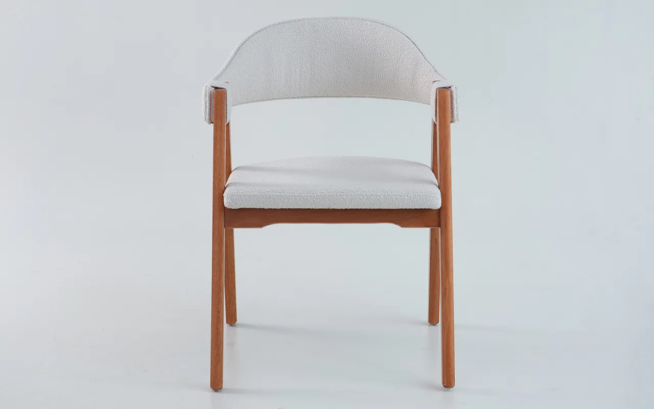 CADEIRA ENCOSTO ANATÔMICO ESTOFADO ASTRID VERNIZ JATOBÁ BOUCLE OFF WHITE 63X69X81 CM