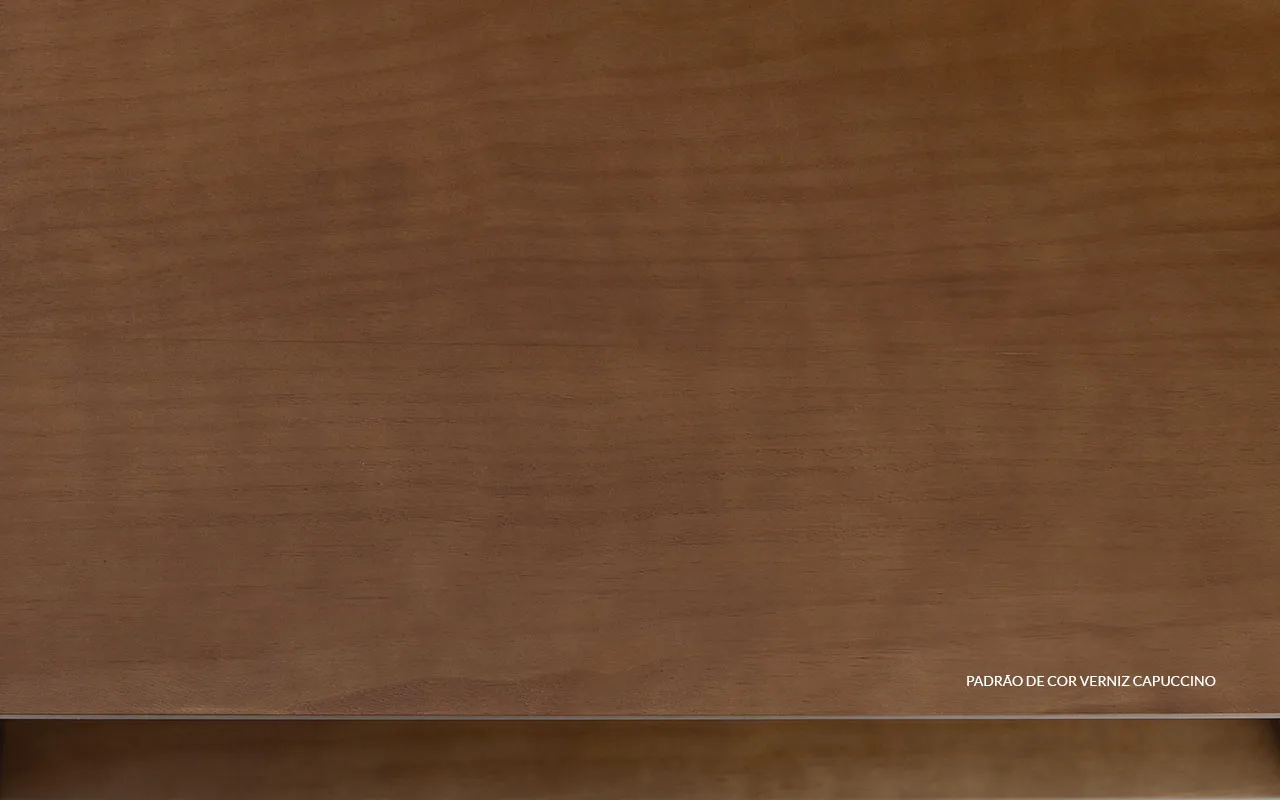 Caixa em madeira taeda fingada, com acabamento em verniz natural, pés em madeira maciça com acabamento na cor das portas, portas em MDF laqueado em diversas cores e dobradiças de alto padrão. |