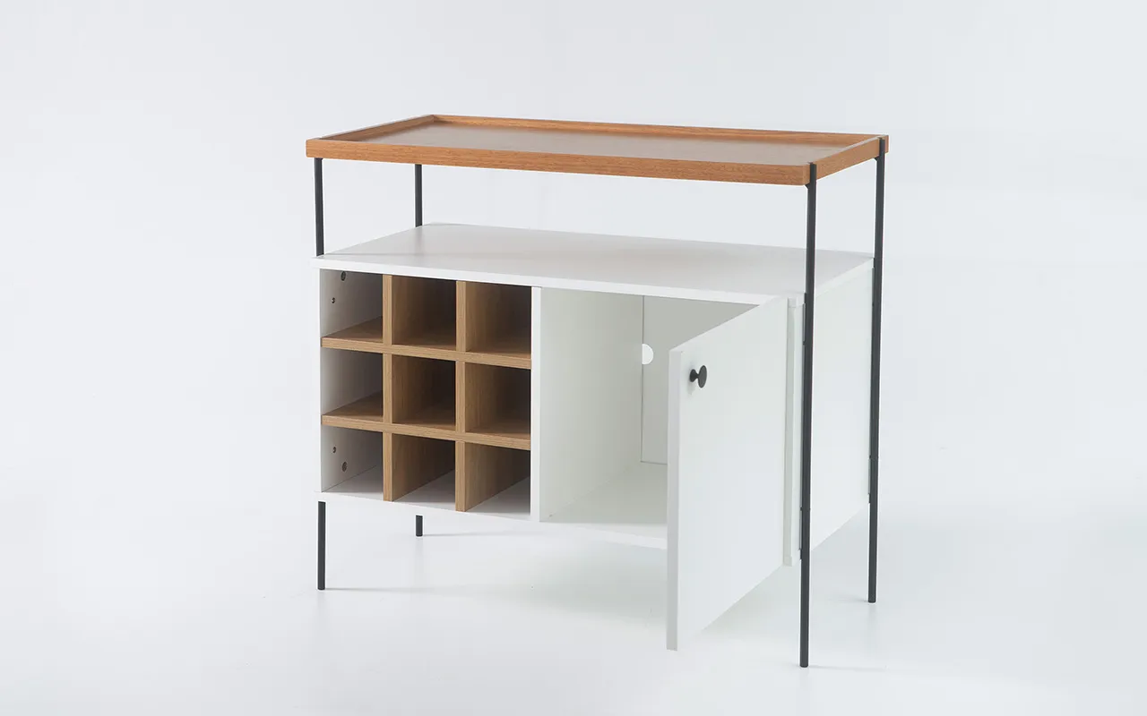 O nosso Aparador Buffet Tray 1 porta com adega combina funcionalidade sofisticada com design moderno para atender às suas necessidades de armazenamento e realçar a estética do seu espaço. Com uma porta elegante e uma adega integrada, este móvel é perfeito para quem busca praticidade sem abrir mão do charme.