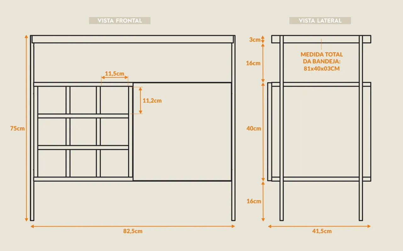 82,5(comprimento) x 41,5(profundidade) x 75(altura) cm.