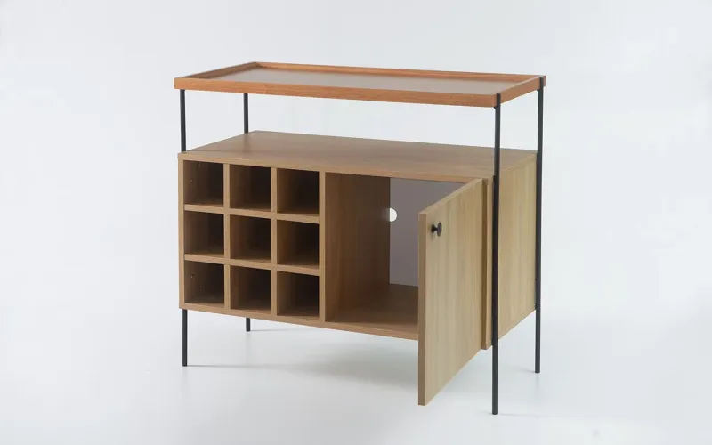 O nosso Aparador Buffet Tray 1 porta com adega combina funcionalidade sofisticada com design moderno para atender às suas necessidades de armazenamento e realçar a estética do seu espaço. Com uma porta elegante e uma adega integrada, este móvel é perfeito para quem busca praticidade sem abrir mão do charme.
