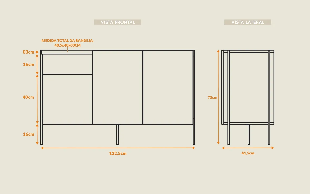 Combinando estilo sofisticado e design versátil, apresentamos o Aparador Buffet Tray, projetado para elevar a estética e a praticidade da sua sala de estar ou cozinha. Este móvel cuidadosamente elaborado é a escolha ideal para quem busca um armazenamento elegante e uma peça central impressionante.