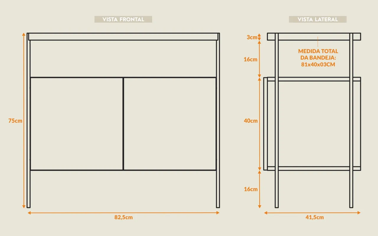 Este aparador é equipado com duas portas principais, permitindo um armazenamento organizado e discreto. Mas a verdadeira inovação está no tampo estendido, que oferece um espaço adicional para itens decorativos ou práticos. A característica principal é a bandeja de madeira maciça de tauari, que não só adiciona um toque de beleza natural, mas também é envernizada para proteção contra desgaste, realçando seu charme único.