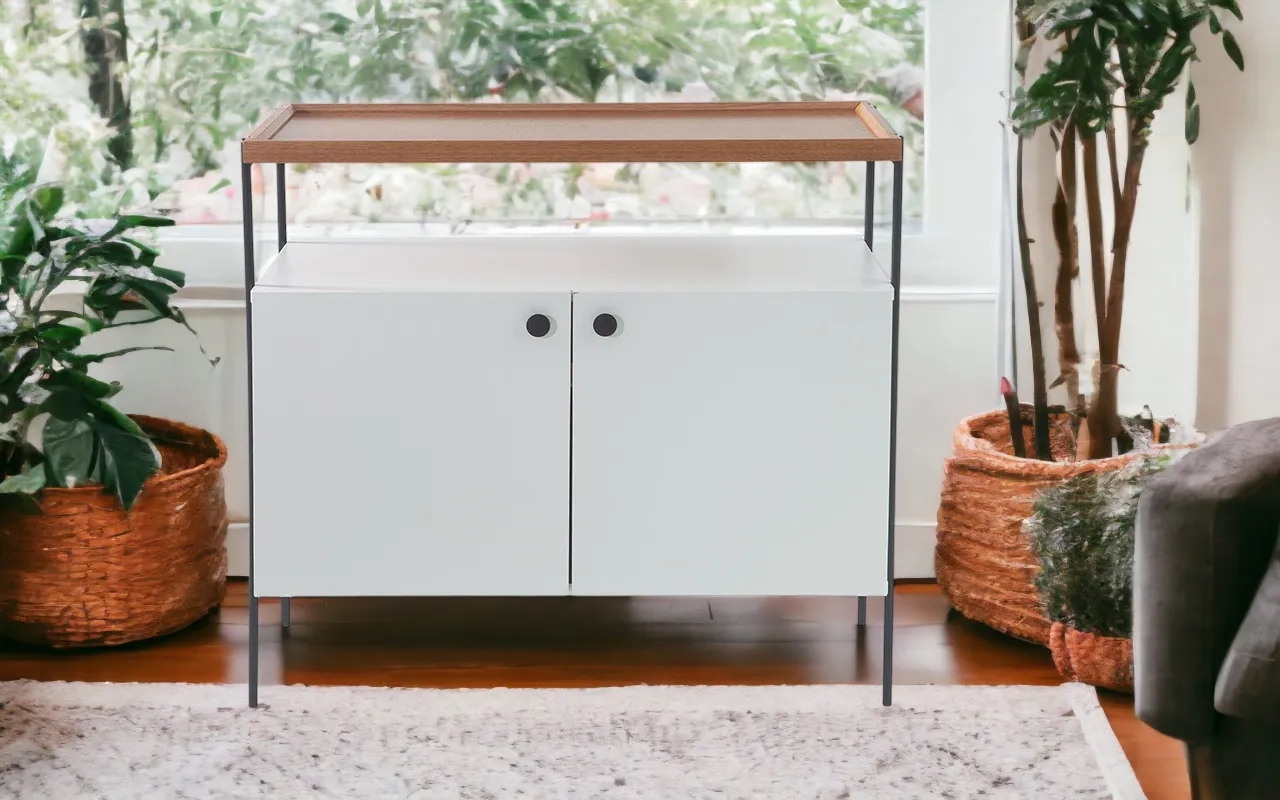 Eleve o design e a funcionalidade da sua sala de estar ou cozinha. Conheça o Aparador Buffet 2 portas com Tampo de Madeira Tray e transforme seu espaço em uma representação tangível do seu gosto refinado.