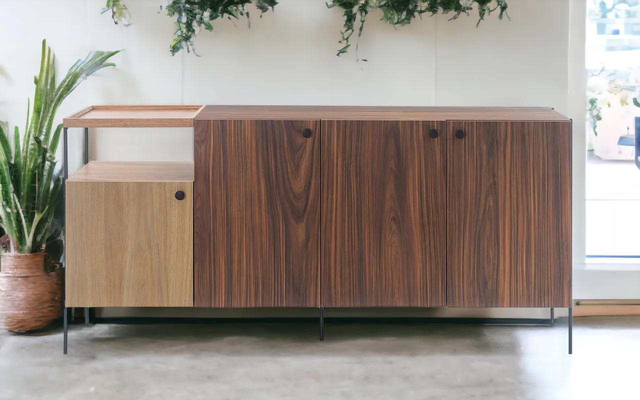 Combinando estilo sofisticado e design versátil, apresentamos o Aparador Buffet Tray, projetado para elevar a estética e a praticidade da sua sala de estar ou cozinha. Este móvel cuidadosamente elaborado é a escolha ideal para quem busca um armazenamento elegante e uma peça central impressionante.