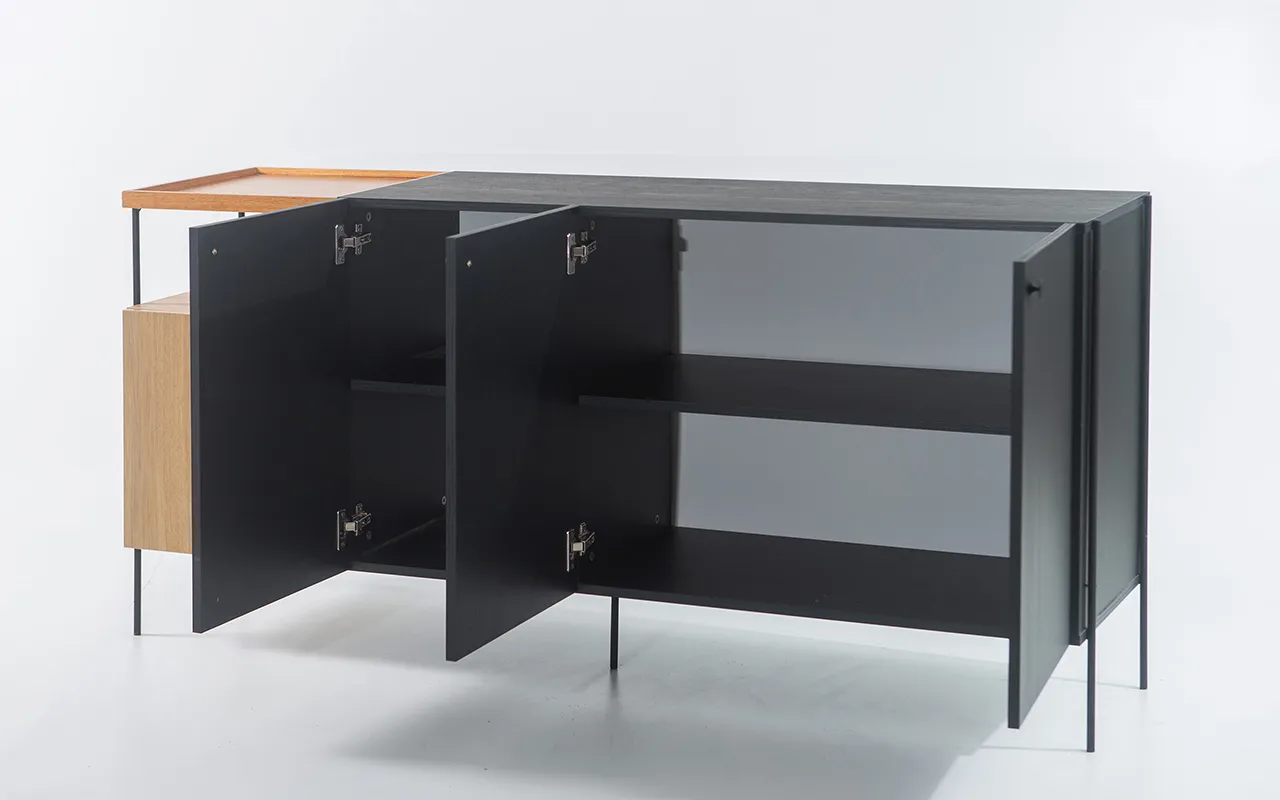 Os pés de metal com tubo redondo não apenas oferecem estabilidade sólida, mas também contribuem para a estética moderna do aparador. E agora, com as dobradiças das portas equipadas com amortecimento, você experimentará um fechamento suave e silencioso, acrescentando um toque de luxo ao seu móvel.
