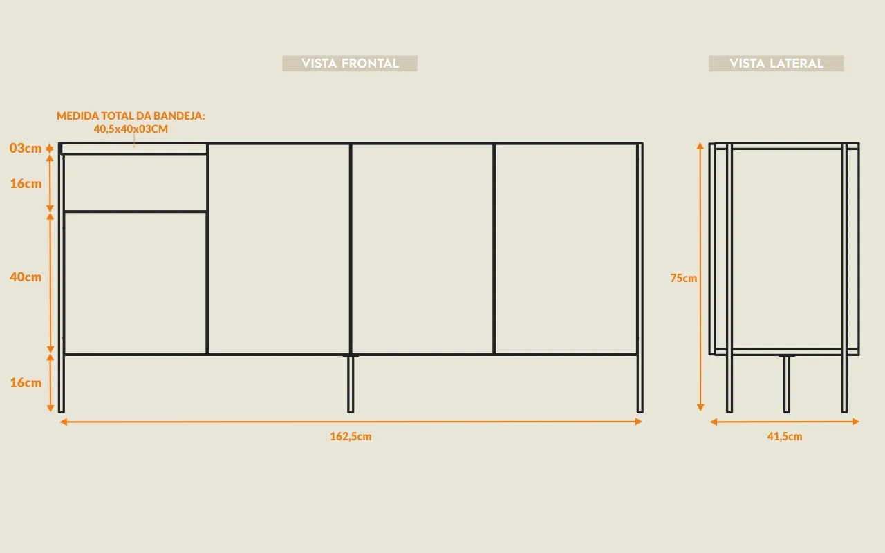 Combinando estilo sofisticado e design versátil, apresentamos o Aparador Buffet Tray, projetado para elevar a estética e a praticidade da sua sala de estar ou cozinha. Este móvel cuidadosamente elaborado é a escolha ideal para quem busca um armazenamento elegante e uma peça central impressionante.