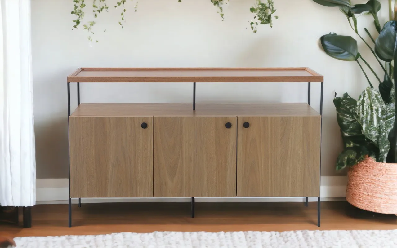 Eleve o design e a funcionalidade da sua sala de estar ou cozinha. Conheça o Aparador Buffet 3 portas com Tampo de Madeira Tray e transforme seu espaço em uma representação tangível do seu gosto refinado.