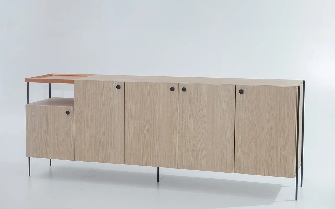 Os pés de metal com tubo redondo não apenas oferecem estabilidade sólida, mas também contribuem para a estética moderna do aparador. E agora, com as dobradiças das portas equipadas com amortecimento, você experimentará um fechamento suave e silencioso, acrescentando um toque de luxo ao seu móvel.
