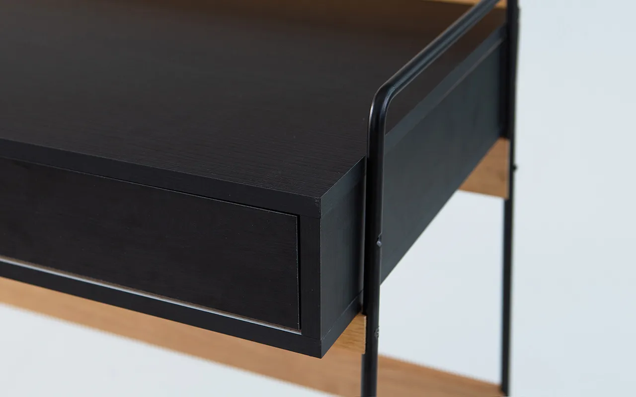 naturais e realça os veios — cada peça é única. Já a caixa das gavetas é feita