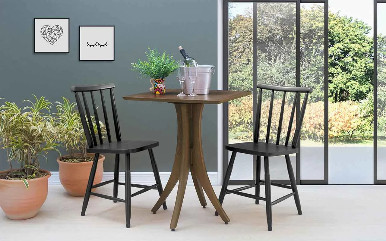 MESA COM DUAS CADEIRAS QUADRADA JULIETTE VERNIZ NOGUEIRA E PRETO