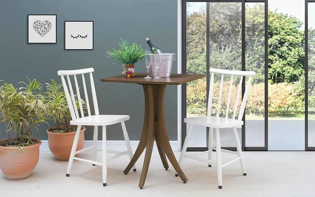 CONJUNTO MESA BISTRÔ QUADRADA COM 2 CADEIRAS JULIETTE VERNIZ NOGUEIRA E BRANCO