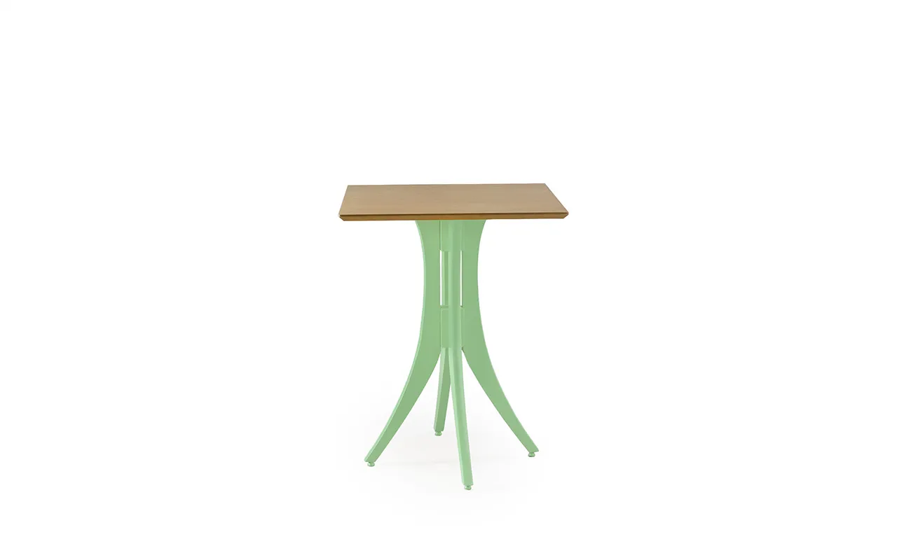 A base e pés da mesa bistrô baixa Juliette é construída em madeira maciça de Tauari (proveniente de manejos reflorestáveis), madeira extremamente resistente e que portanto tem durabilidade ideal para ambientes corporativos.