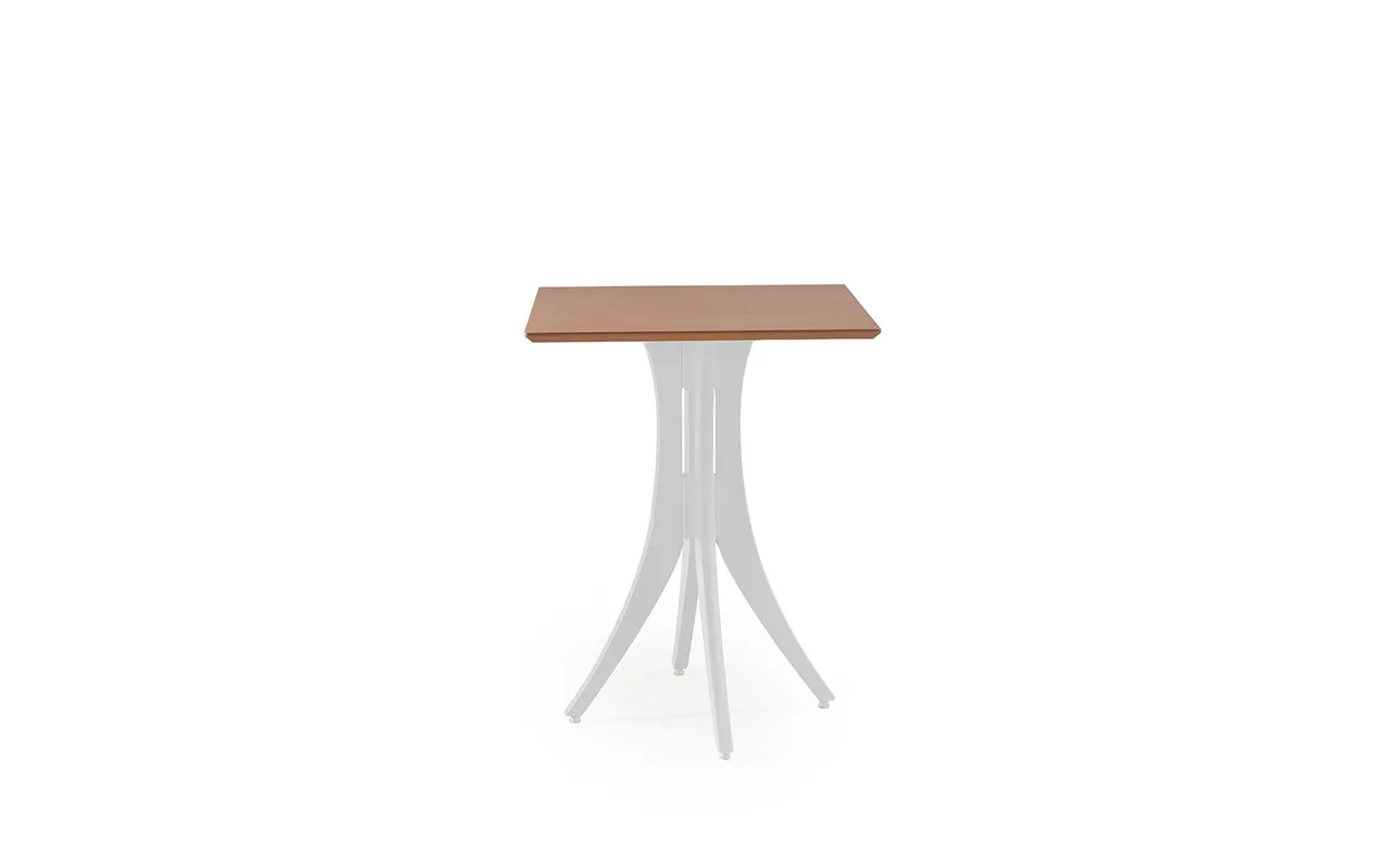 A base e pés da mesa bistrô baixa Juliette é construída em madeira maciça de Tauari (proveniente de manejos reflorestáveis), madeira extremamente resistente e que portanto tem durabilidade ideal para ambientes corporativos.