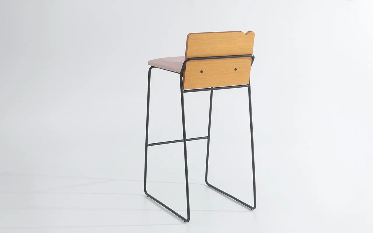 O banco alto Bend tem versões com e sem encosto, além da opção de assentos e encostos laminados de madeira, além das opções de assentos estofados em vários tecidos disponíveis.